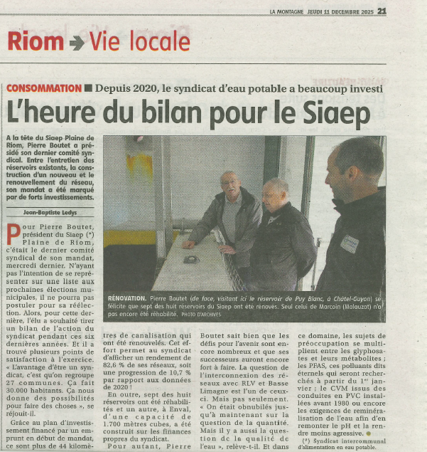 L'heure du bilan pour le SIAEP - Article La Montagne du 11 décembre 2025